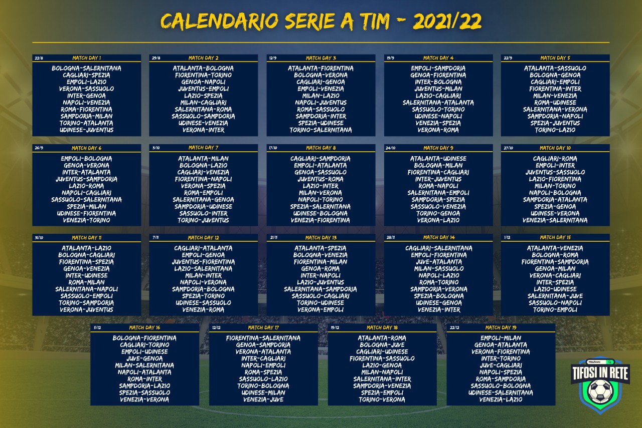 I campioni d’Italia dell’Inter ripartiranno tra le mura amiche contro il Genoa, la Roma di Mourinho ospiterà la Fiorentina di Italiano mentre la Juventus di Allegri inizierà da Udine il suo campionato.