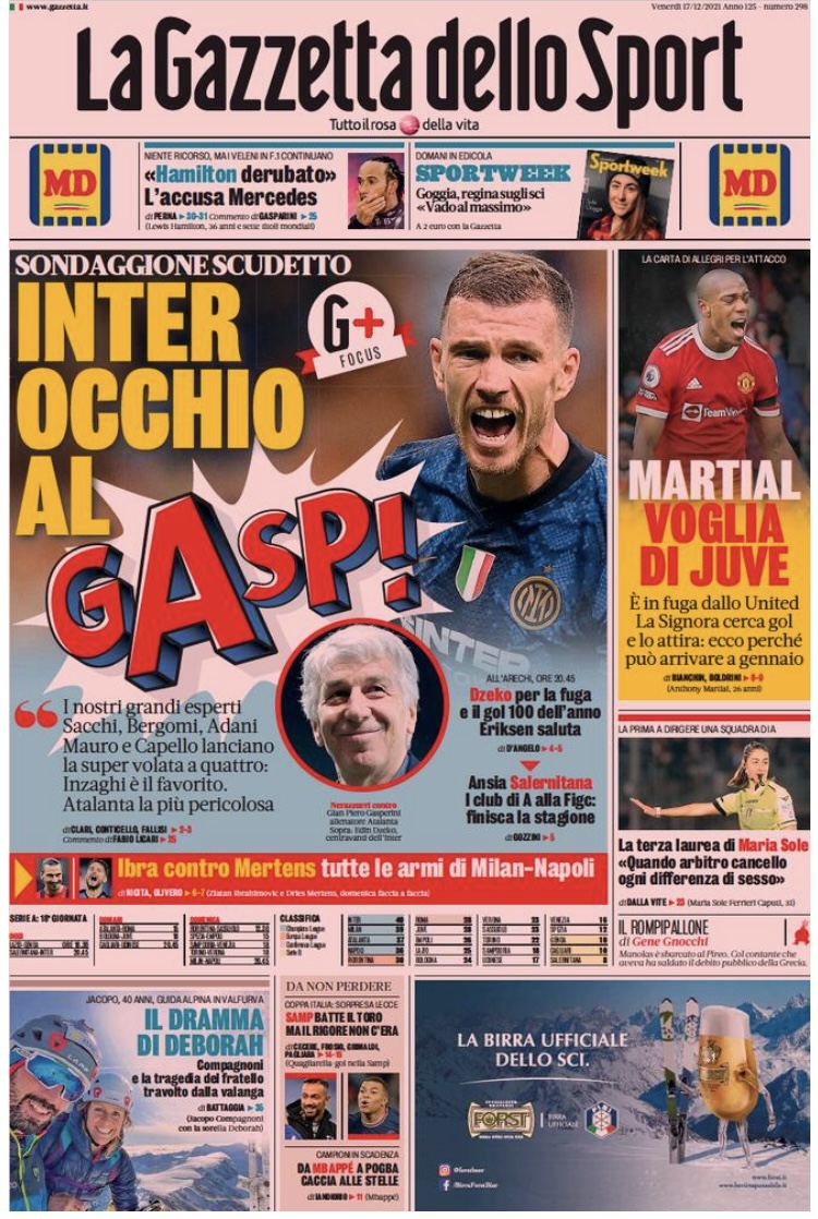 Non solo Serie A nei titoli dei giornali sportivi di oggi: si parla di Inter capolista nella massima serie, ma anche del caso Salernitana con la scadenza del trust al 31 dicembre, e del rinvio della Coppa d’Africa dopo l’ultimo aumento dei casi di Covid.
