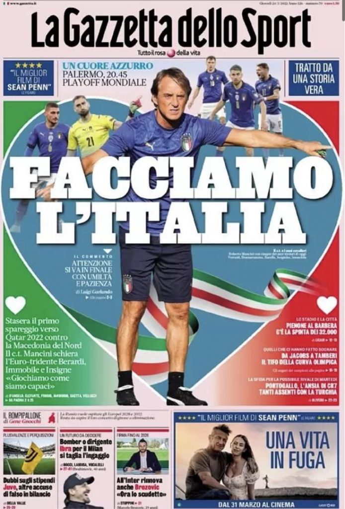 E’ il giorno della nazionale impegnata in semifinale a Palermo Giornali sportivi monotematici, e non poteva essere altrimenti: a Palermo...