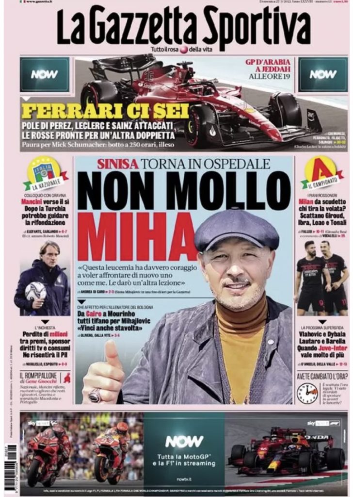 La ricaduta per Mihajlovic ĆØ stata la notizia principale di ieri Lāannuncio di nuove cure da parte di Sinisa Mihajlovic...