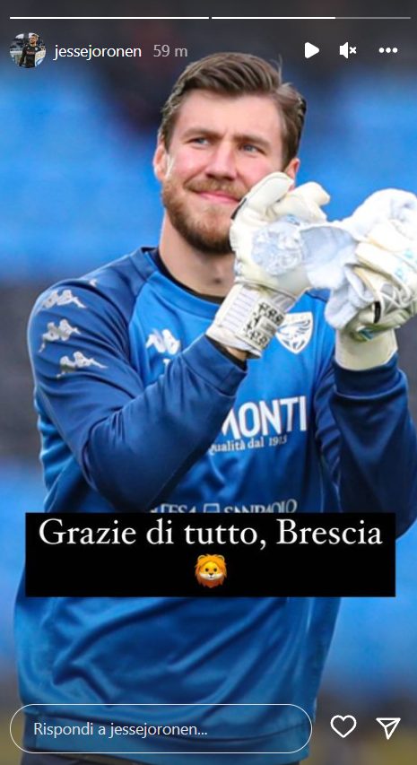 Due storie su Instagram per il portiere: una l’annuncio del suo trasferimento a Venezia, l’altra il saluto al Brescia