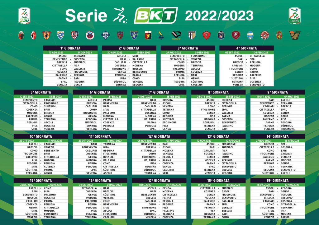 L’inizio Campionato (prima giornata) è previsto sabato 13 agosto, con la gara inaugurale del campionato che si potrà disputare, in anticipo, venerdì 12 agosto 2022. Due i turni infrasettimanali giovedì 8 dicembre e martedì 28 febbraio. Le soste per gli impegni nazionali sono previste: sabato-domenica 24 e 25 settembre; sabato e domenica 19-20 novembre e sabato e domenica 25-26 marzo. Fine campionato (ultima giornata) venerdì 19 maggio, mentre la sosta invernale è programmata dal 27 dicembre 2022 al 13 gennaio 2023.
