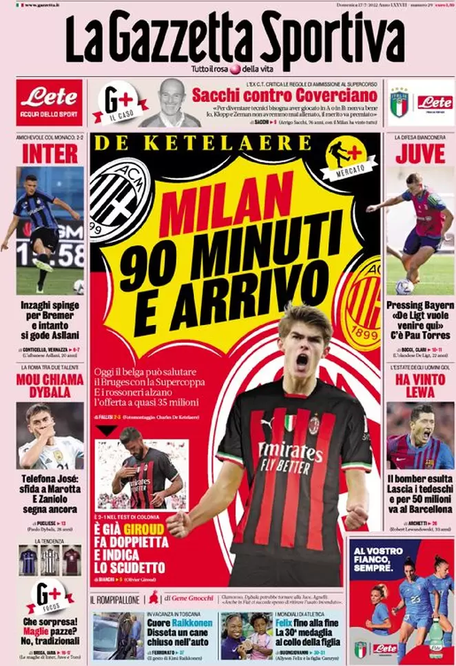 Ecco le prime pagine di Gazzetta dello Sport, Corriere dello Sport e Tuttosport in edicola oggi, domenica 17 luglio