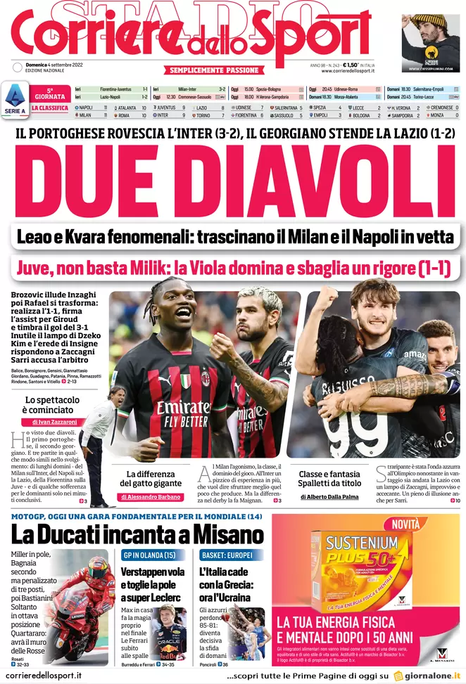 Buona domenica 4 settembre e ben ritrovati nel consueto spazio dedicato alla rassegna stampa. Queste le prime pagine dei principali quotidiani sportivi nazionali in edicola oggi: