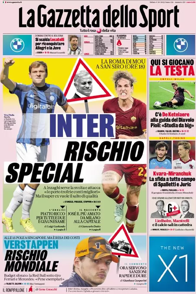 Ecco le prime pagine di sabato primo ottobre relative ai principali quotidiani sportivi: Gazzetta dello Sport, Corriere dello Sport e...