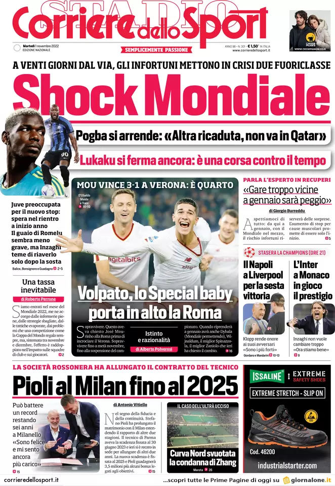 Ecco le prime pagine dei principali quotidiani sportivi italiani in edicola oggi, martedì 1 novembre.
