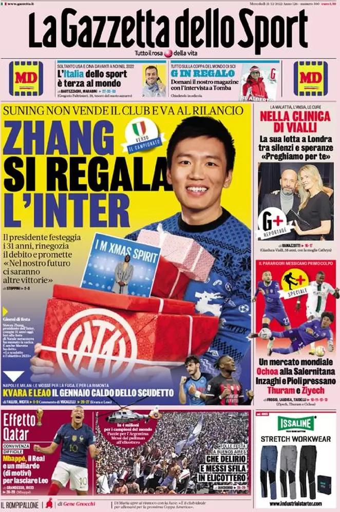 Di seguito le prime pagine di Gazzetta dello Sport, Corriere dello Sport e Tuttosport in edicola oggi, mercoledƬ 21 dicembre.