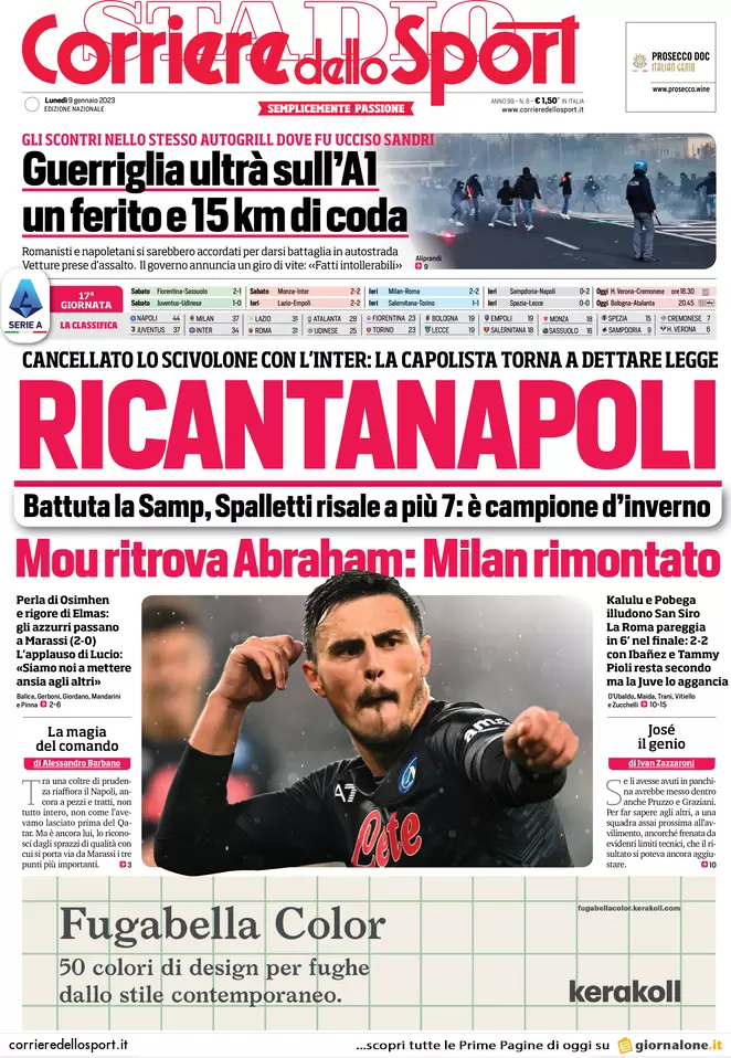 Di seguito le prime pagine di Gazzetta dello Sport e Corriere dello Sport in edicola oggi, lunedì 9 gennaio.