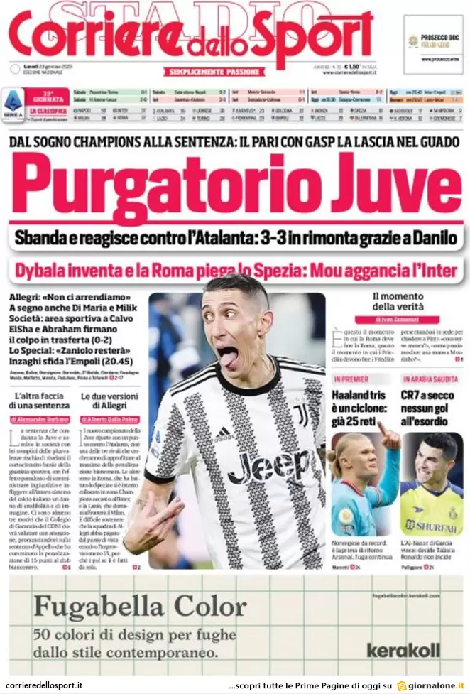 Di seguito le prime pagine di Gazzetta dello Sport, Corriere dello Sport e Tuttosport in edicola oggi, lunedì 23 gennaio.