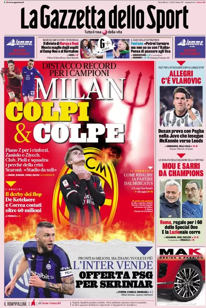 Di seguito le prime pagine di Gazzetta dello Sport, Corriere dello Sport e Tuttosport in edicola oggi, giovedƬ 26 gennaio.