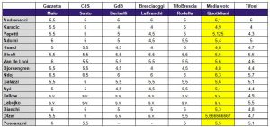 Qui sotto la tabella con tutti i voti ai giocatori:
