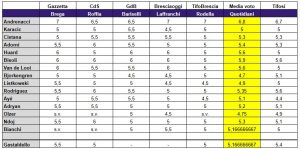 Qui sotto è riportata la tabella riassuntiva con le votazioni di tutti i giocatori biancazzurri: