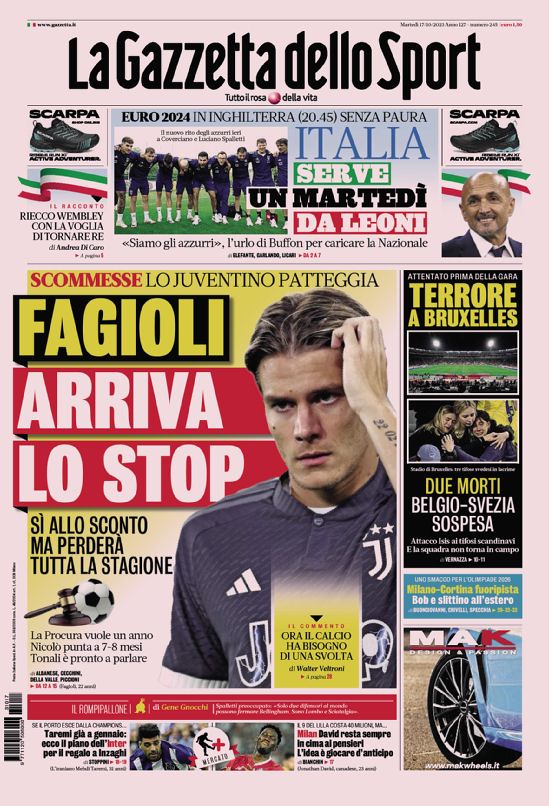 Le prime pagine dei quotidiani sportivi di oggi, martedƬ 17 ottobre...