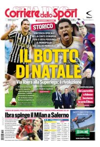 Le prime pagine dei quotidiani sportivi di oggi, venerdì 22 dicembre
