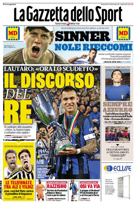 Le prime pagine dei quotidiani sportivi di oggi, mercoledƬ 24 gennaio...