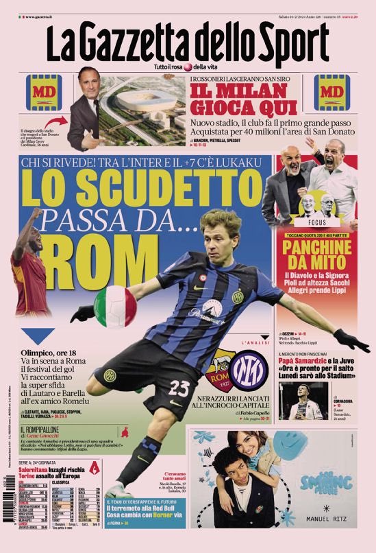 Le prime pagine dei quotidiani sportivi di oggi, sabato 10 febbraio...