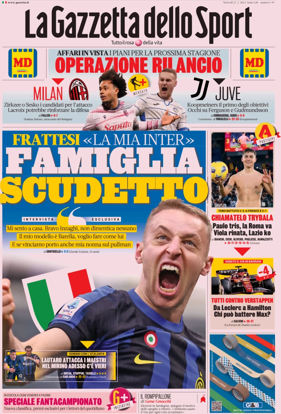 Le prime pagine dei quotidiani sportivi