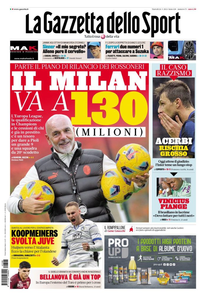 Le prime pagine dei quotidiani sportivi di oggi, martedƬ 26 marzo...