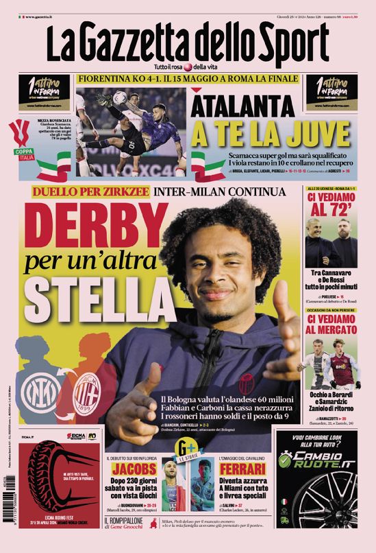 Le prime pagine dei quotidiani sportivi di oggi, giovedƬ 25 aprile...