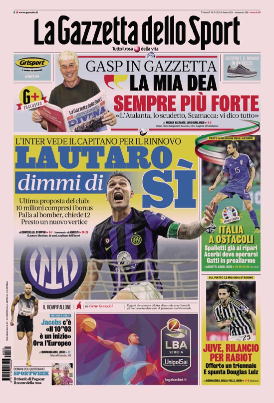 Le prime pagine dei quotidiani sportivi di oggi, venerdƬ 31 maggio...