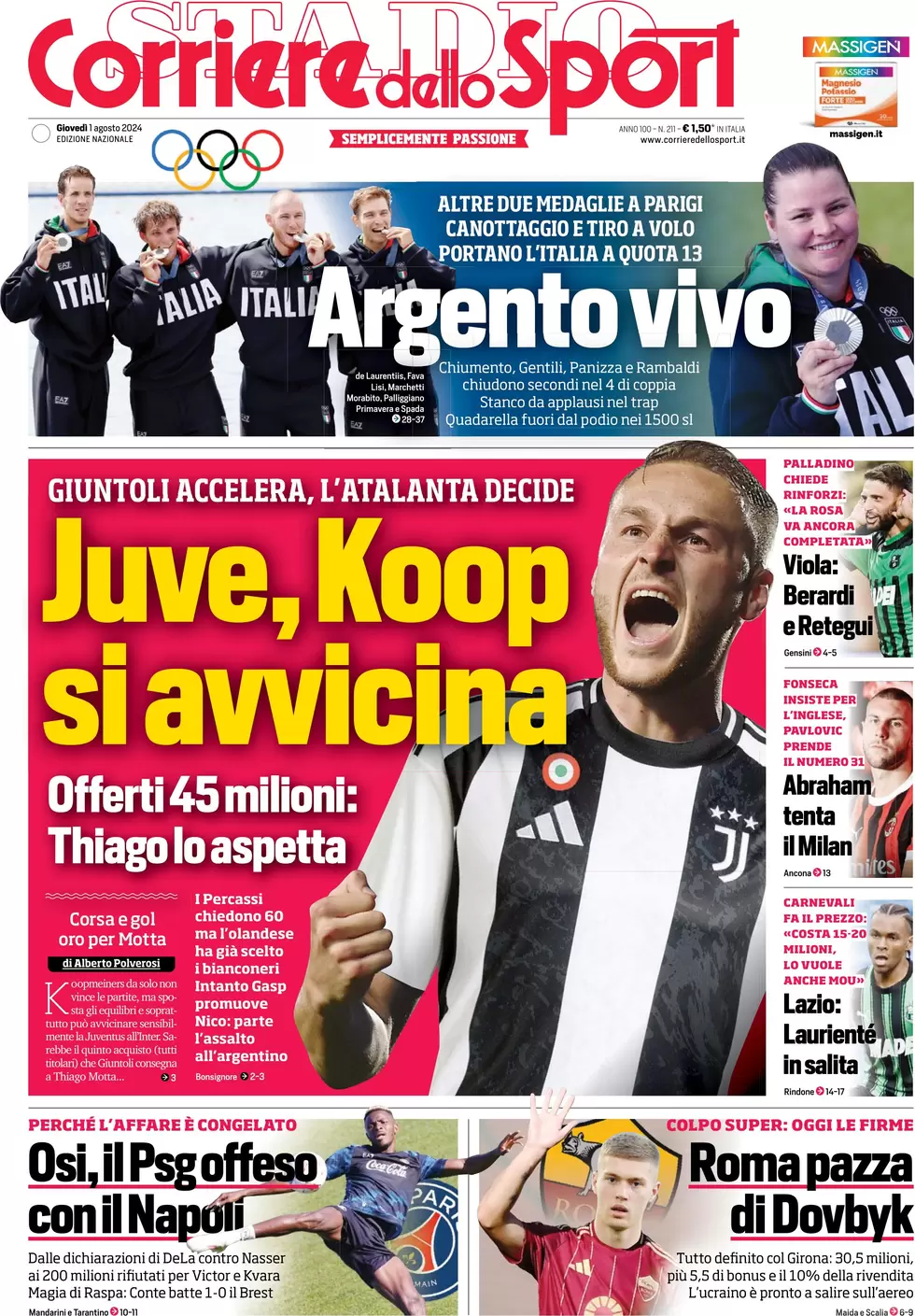 Le prime pagine di oggi, giovedì 1 agosto 2024