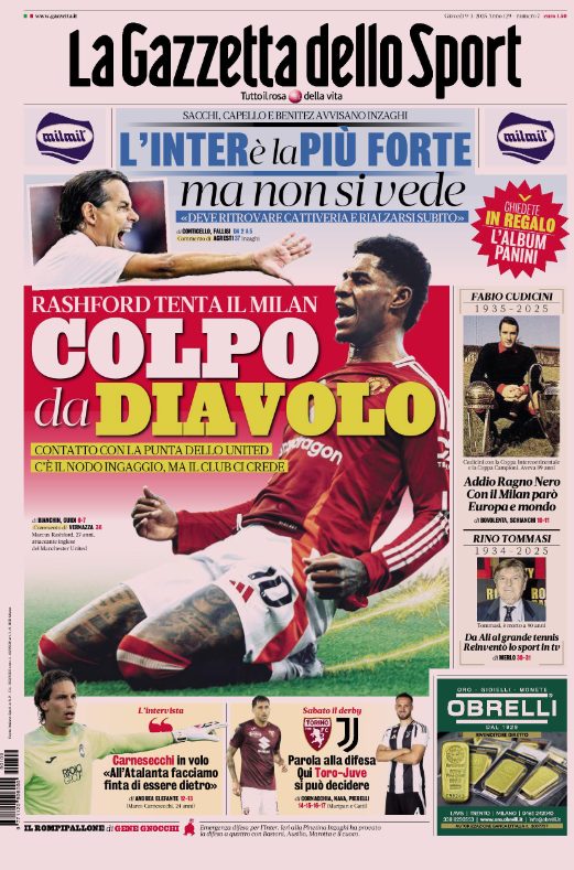 Le prime pagine dei quotidiani sportivi di oggi, giovedƬ 9 gennaio...