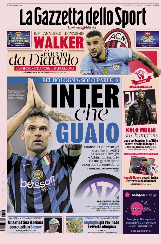 Le prime pagine dei quotidiani sportivi di oggi, giovedƬ 16 gennaio...