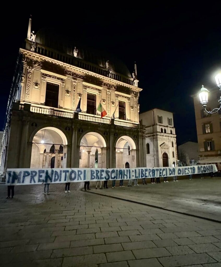 Striscione dei tifosi contro la gestione Cellino e l'indifferenza delle istituzioni nei confronti del Brescia...
